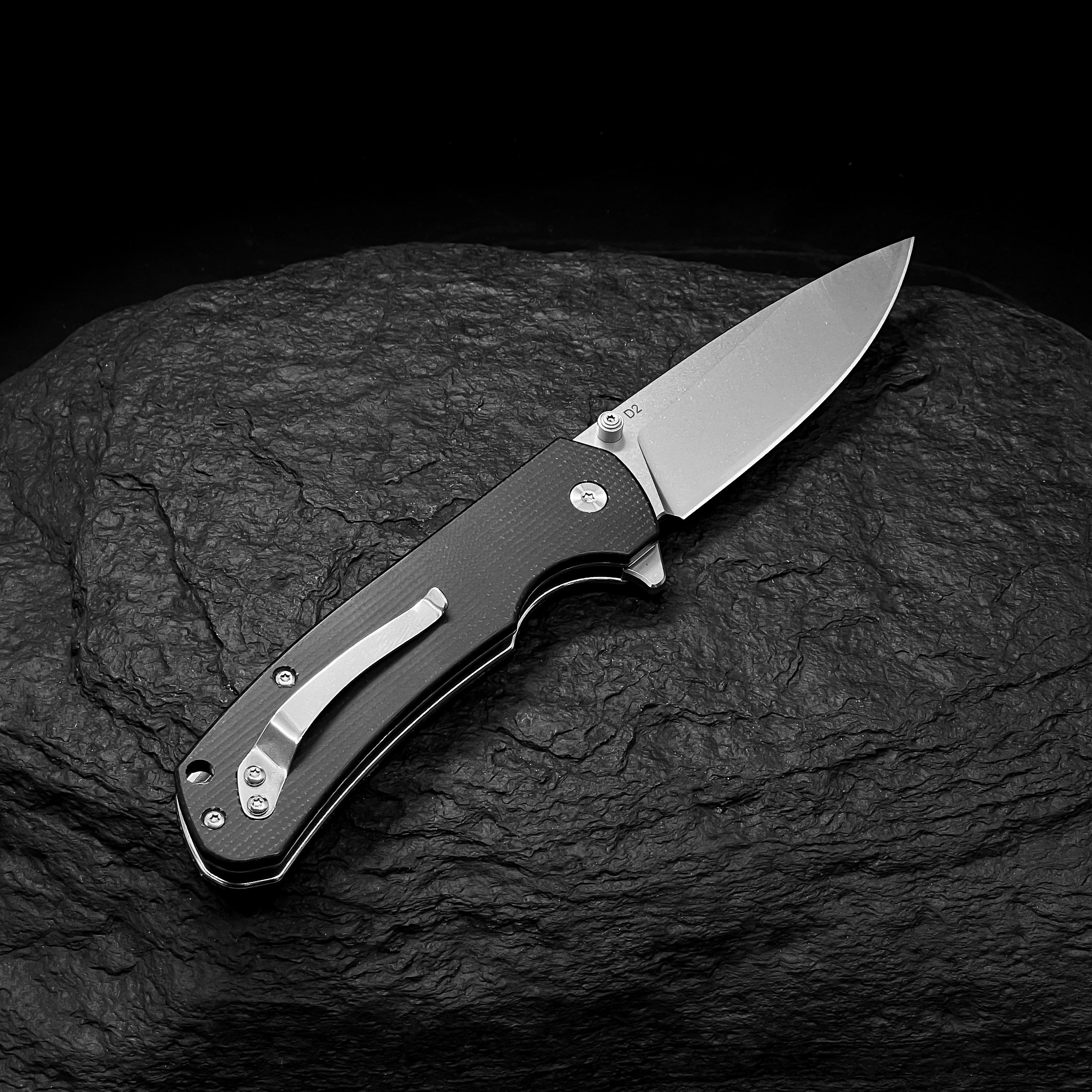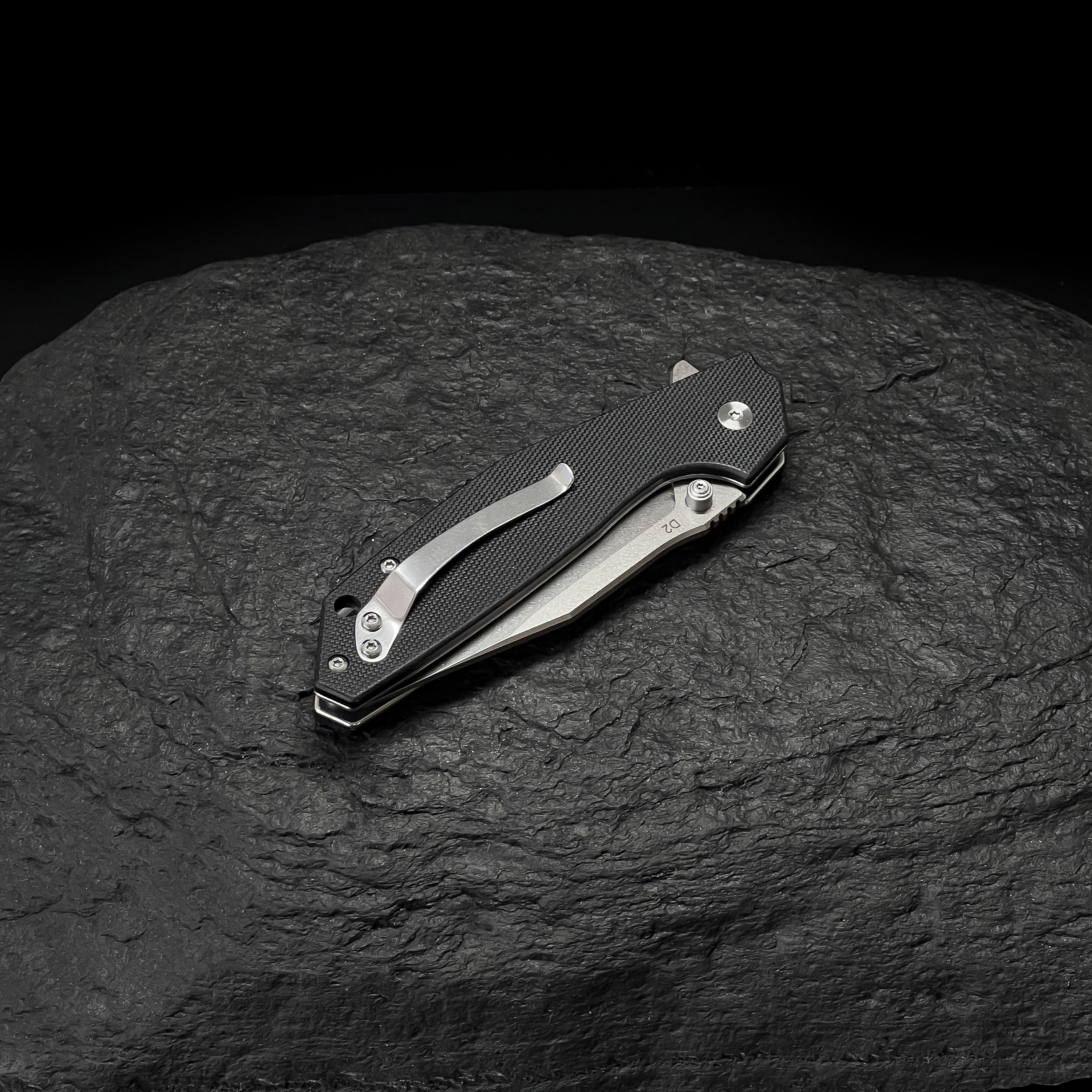 A reliable everyday carry knife with premium materials and effortless deployment. Featuring a stonewashed D2 clip point blade for exceptional edge retention, paired with textured black G10 handle scales for a secure grip. The button lock mechanism ensures smooth one-handed operation, while the flipper tab and thumb studs provide multiple deployment options. Ergonomic, fidget-friendly, and built to last.